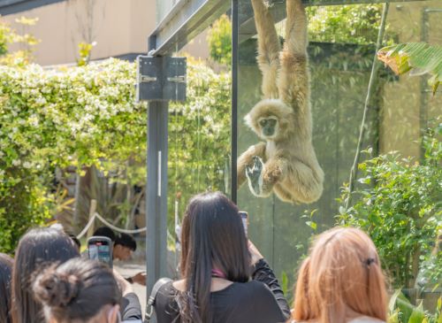 5~6名のグループにわかれて、園内を散策。その中で「京都市動物園遠足クイズ」に取り組みました。
