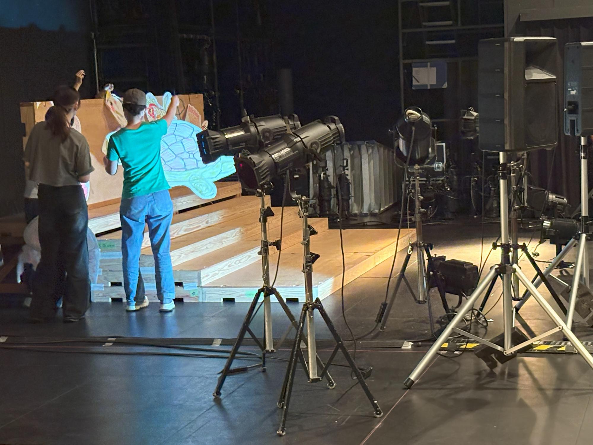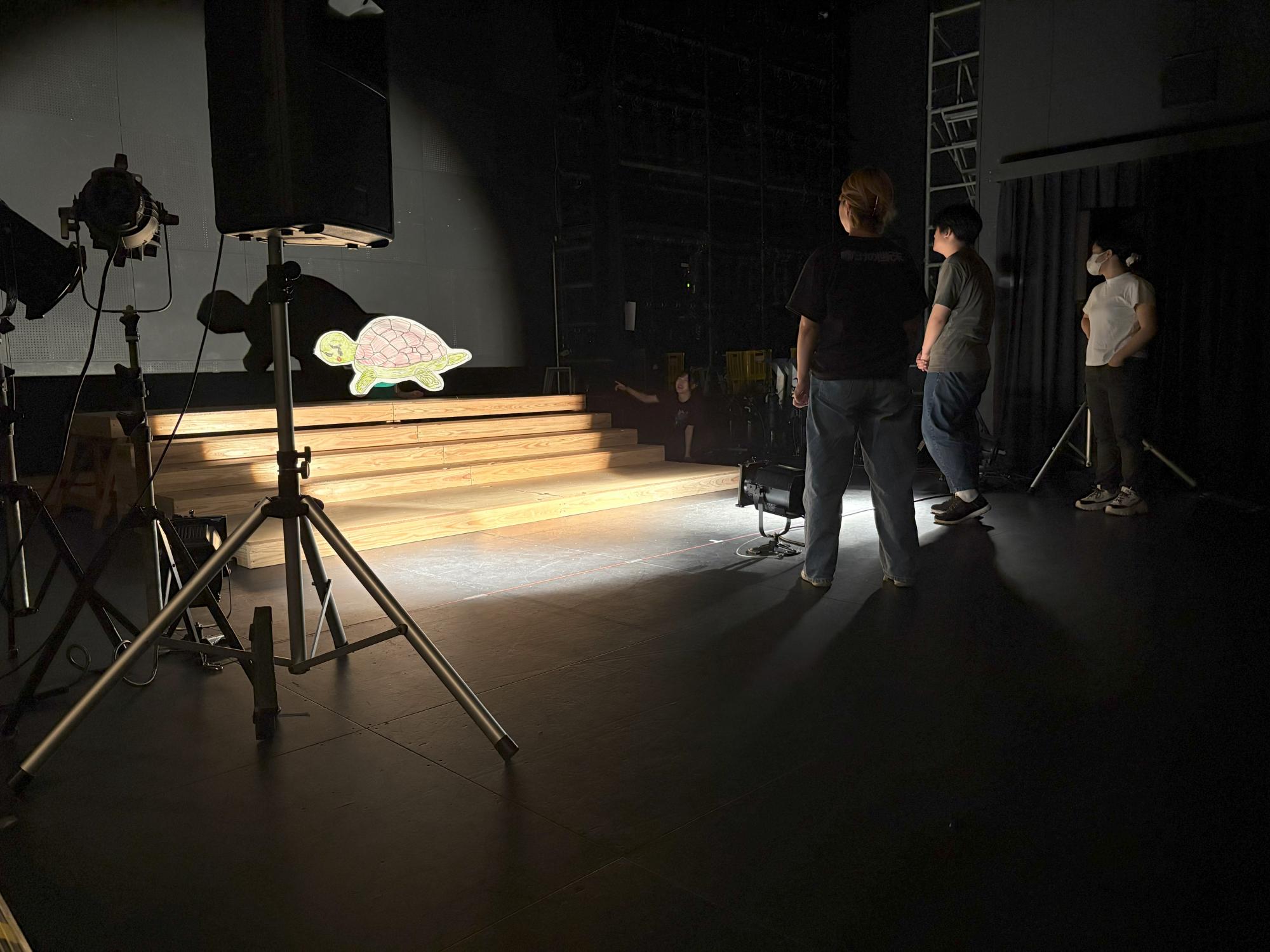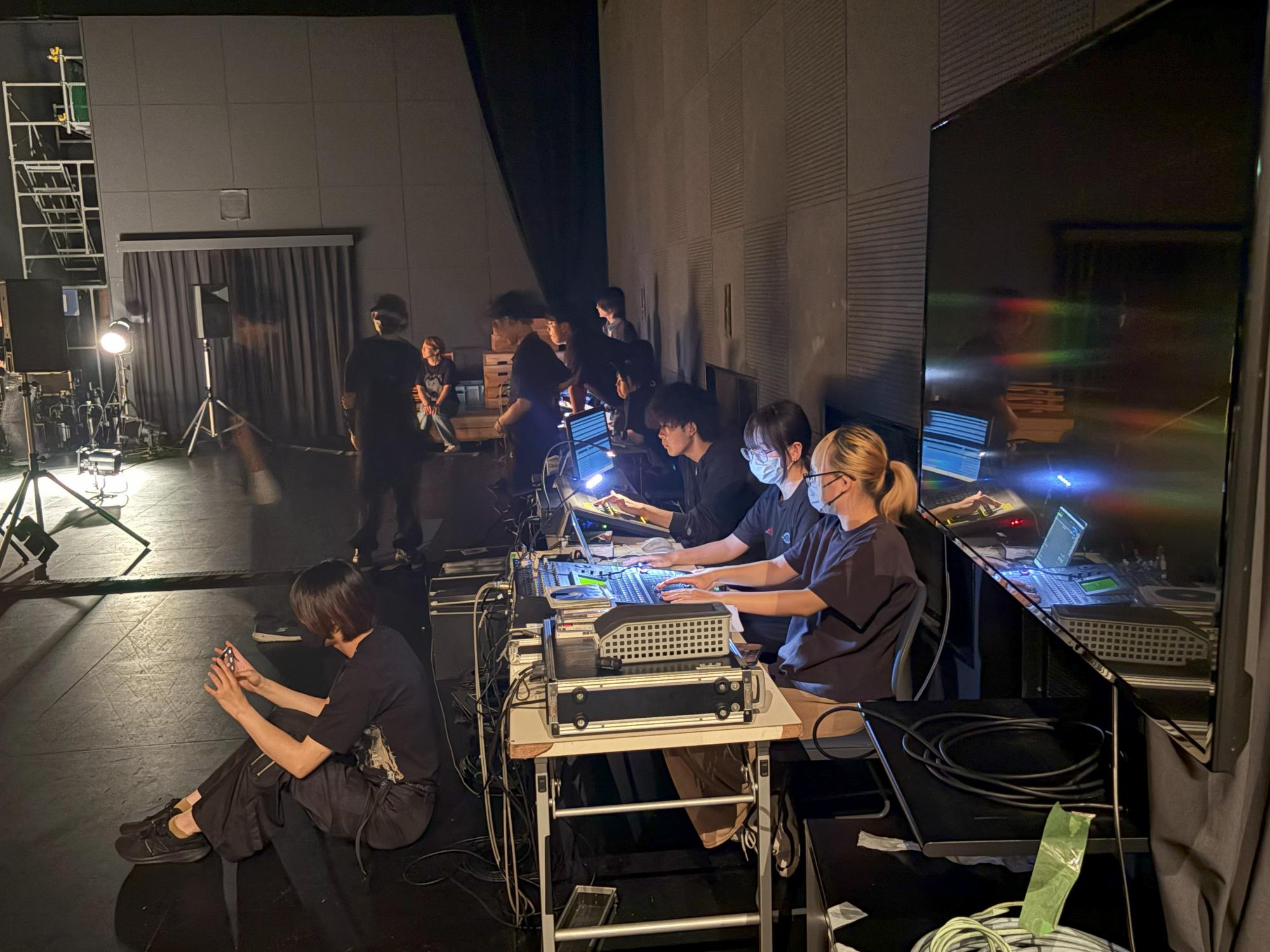 大学の『スタジオ21』で行われた授業では、なんと演者を置かずに舞台芸術だけで浦島太郎を表現するという挑戦的な取り組みでした!美術・照明・音響の3つの役割から好きなものを選んだ生徒たちが2チームに分かれて、最終発表に向けて準備していました。