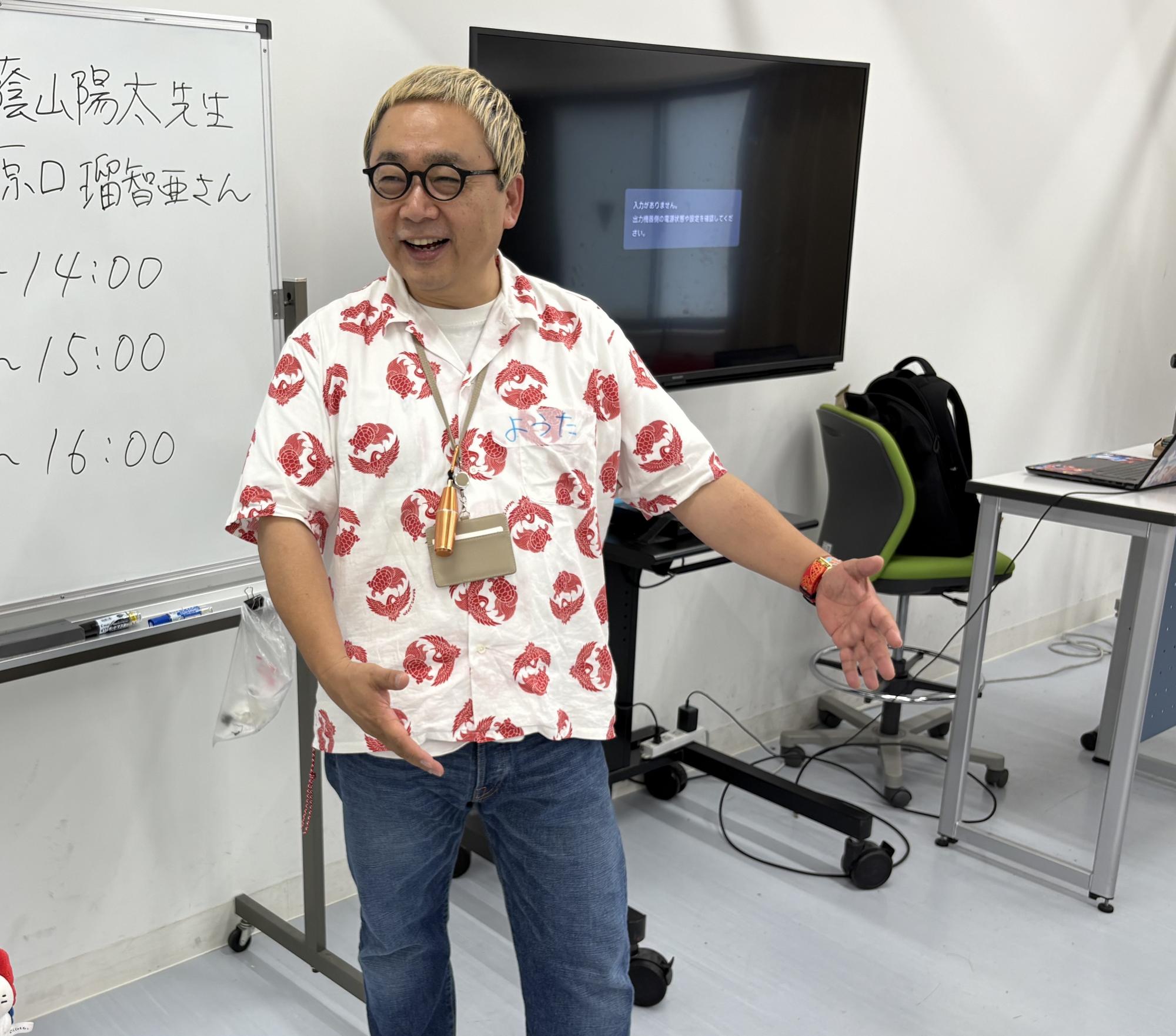 カードゲームを制作された蔭山先生。