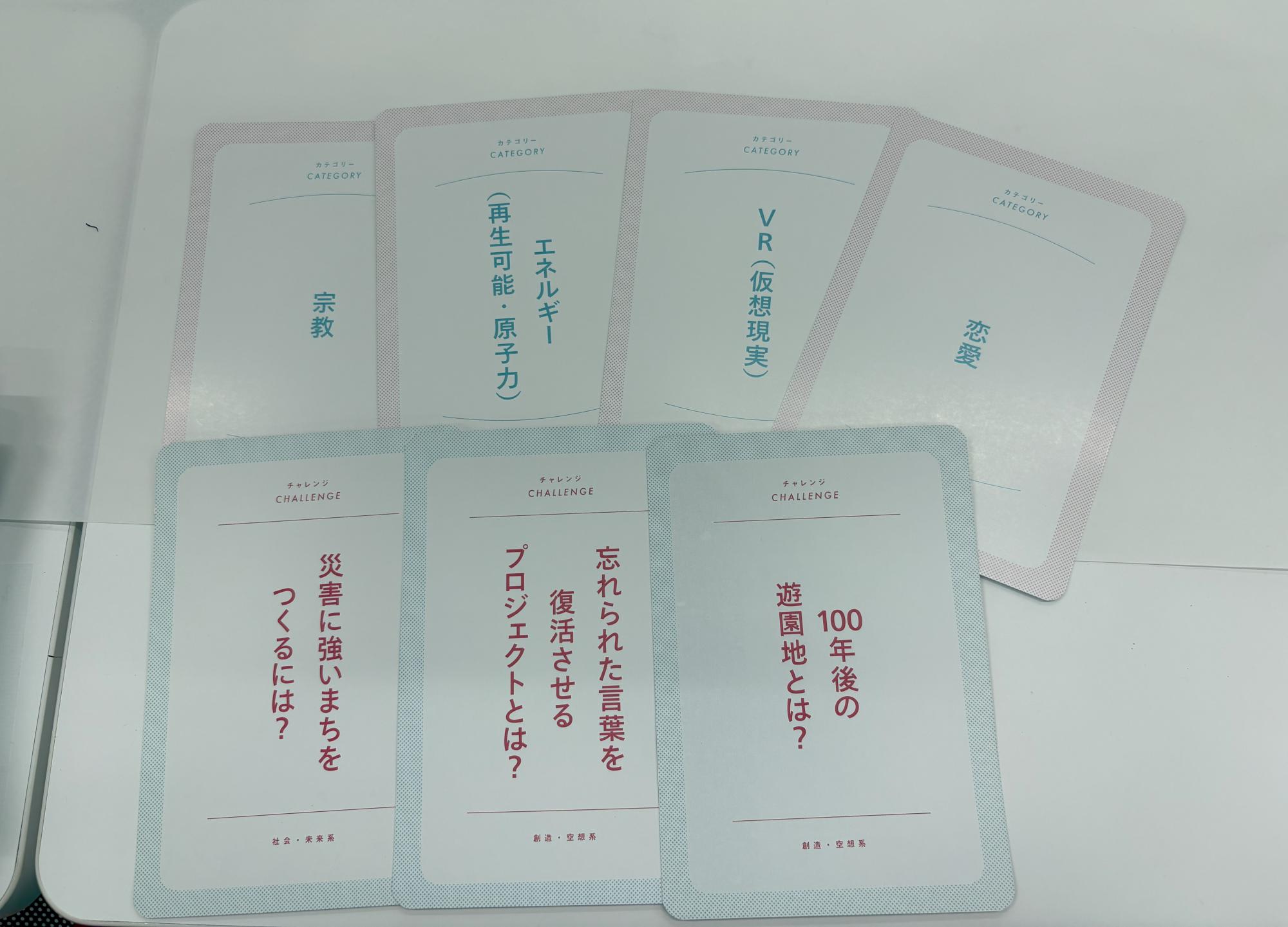授業ではまず、アイスブレイクとして先生オリジナルのカードゲームからスタート!いろんな問題に対し与えられたモノで解決策を考えるワークで、「えっ、そんな発想あるの⁉」と驚くようなアイデアもたくさん飛び出していました。