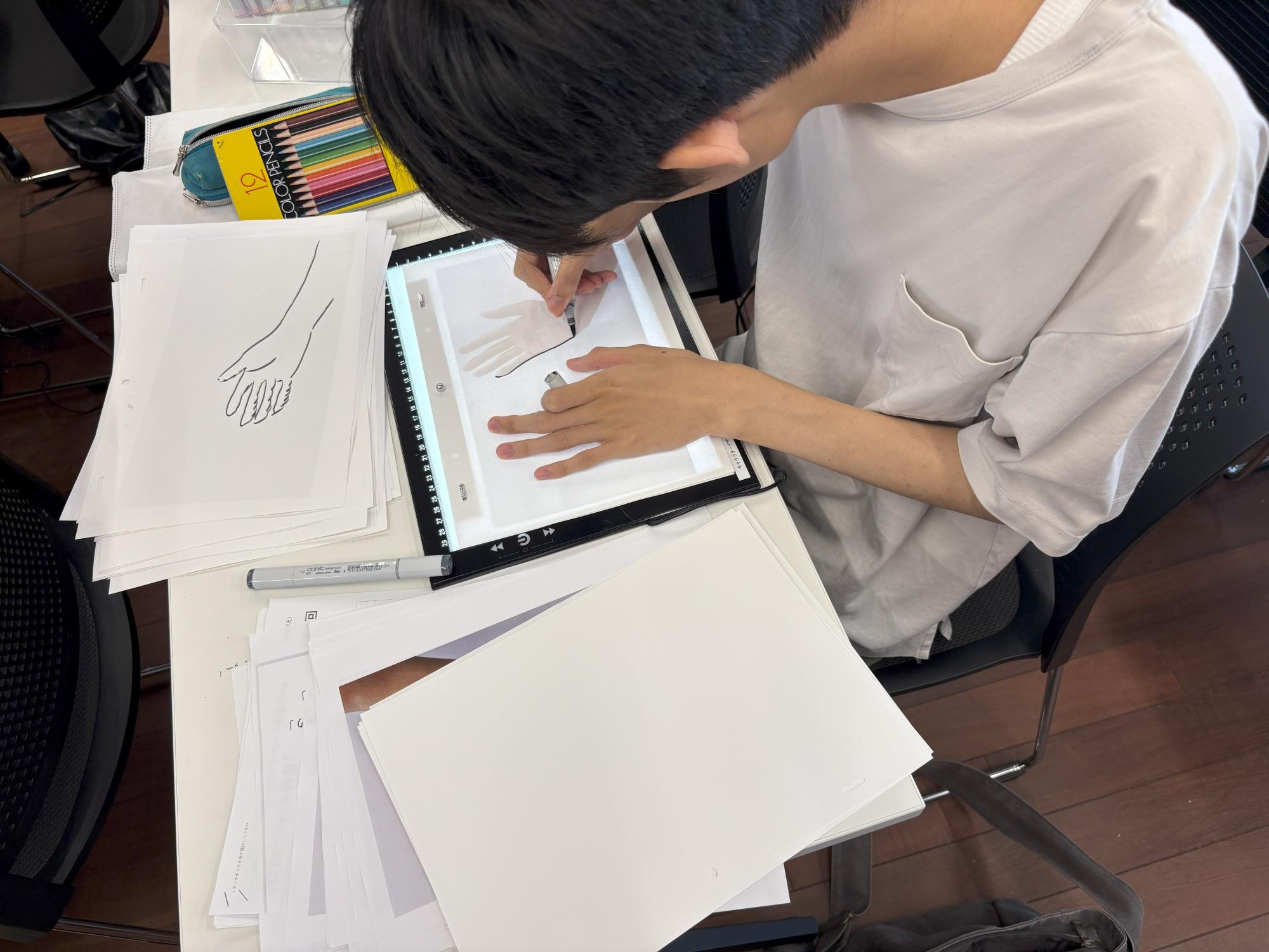 次に訪問したのは「キャラクターデザイン」。2日間でアニメとゲーム、両方を学ぶそうで、私は1日目のアニメーションの方にお邪魔しました。