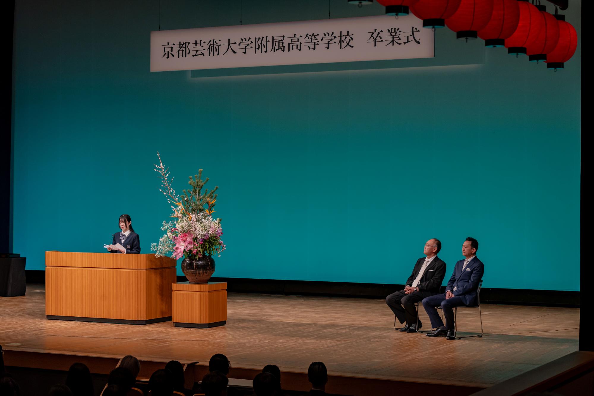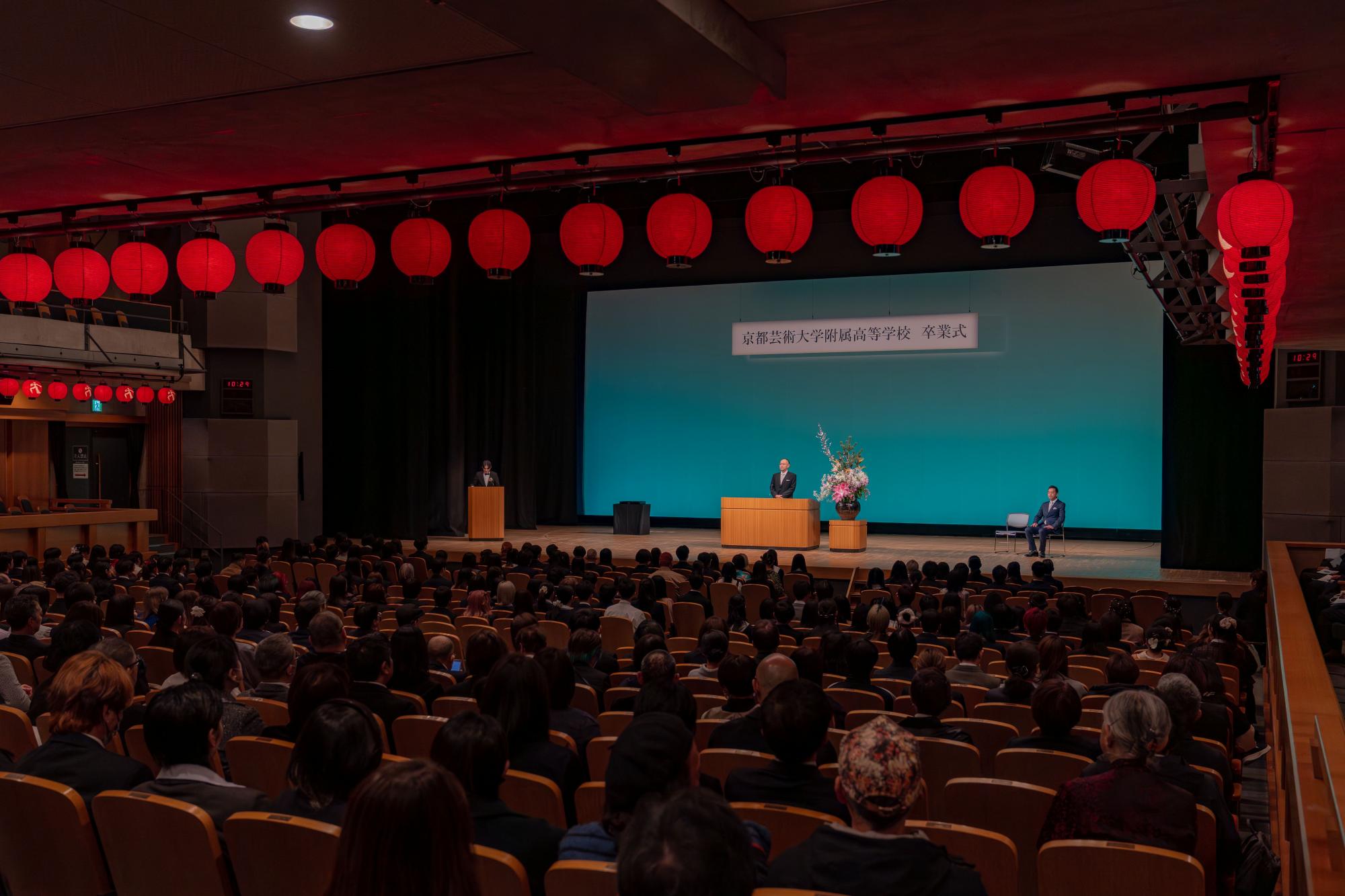 本校の卒業式は、お隣の大学内にある「春秋座」という劇場で行われます。他の高校とは違って少し特別感のある場所での式となります!(羨ましい✨)